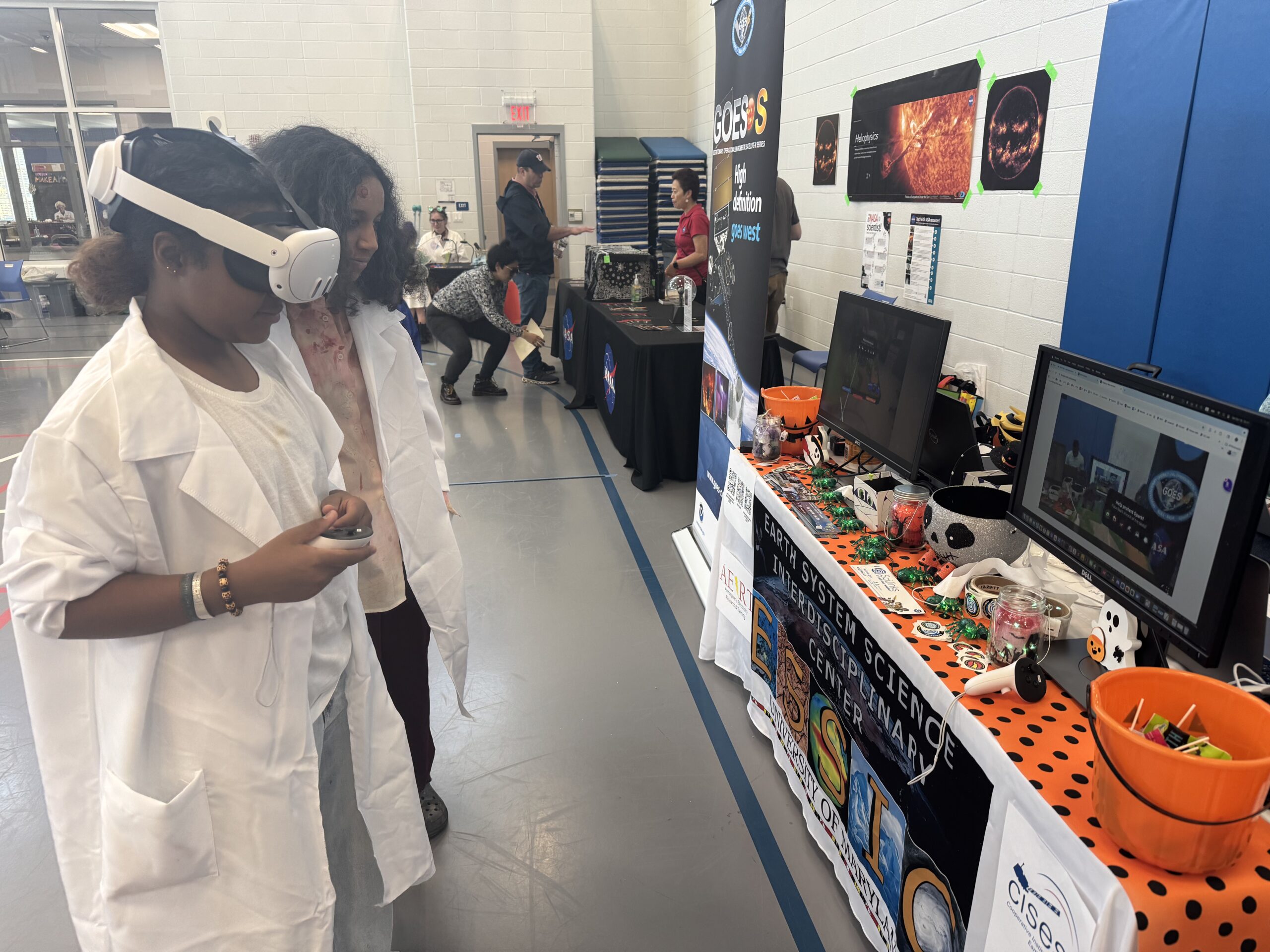 On October 18, 2025, ESSIC/CISESS scientist Guangyang Fang and CISESS interns Anh Pham and Samuel Wiggins were invited to host a STEM outreach booth on behalf of the UMD/ESSIC/CISESS at the 10th Annual Spooky Mad Science Expo, held at the Patrick Henry Recreation Center in Alexandria, Virginia.