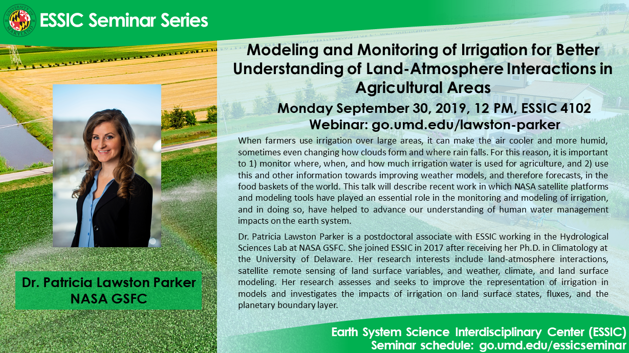 ESSIC seminar coordinator: Dr. John Yang, jxyang@umd.edu